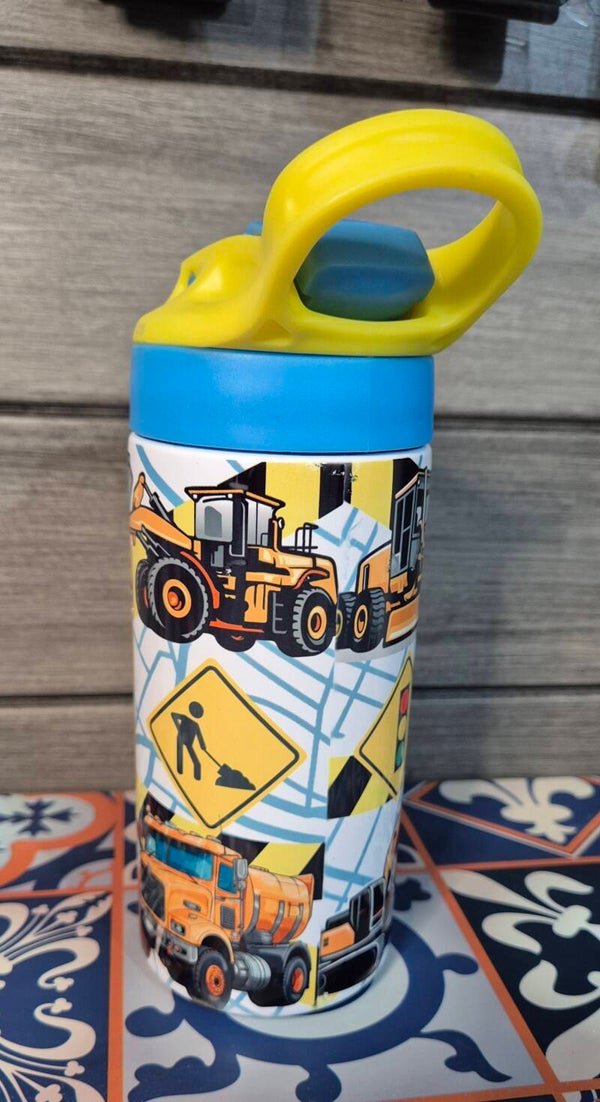 These 360ml stainless steel kids drink bottles includes a cap with retractable silicone straw.