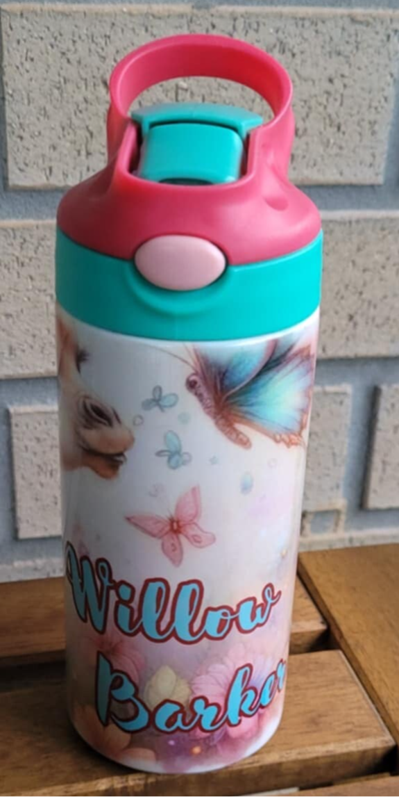 Custom Drink bottle. You can choose from one of my designs and add a name or send me your personalization request.